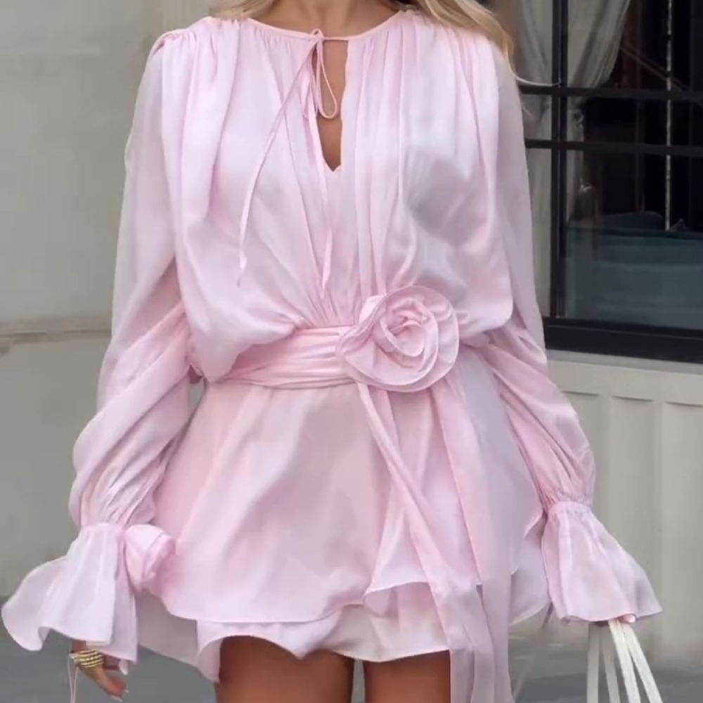 【产品设计】这款夏日新款迷你裙将夏日的甜蜜融入其中,这款迷人的连衣裙将女性的细节与日常的可穿性融合在一起。它的设计重点是柔软,浪漫的美学,它的特点是一个讨人喜欢的v领,勾勒出锁骨,再加上一个束腰的轮廓,强调曲线,同时保持舒适的合身。最突出的元素是褶边的下摆,精致的层叠增加了动感和趣味性,加上长袖,带来了一丝谦逊——非常适合凉爽的夏夜或那些喜欢更多覆盖的人。作为迷你裙,它的长度在膝盖以上,让你看起来轻盈而年轻 【材质与工艺】这款裙子采用轻质、透气的面料制作而成,触感柔软,质地光滑,垂坠美观。选择这种材料是因为它能够保持褶边的形状而不会感觉僵硬,确保层保持蓬松和充满活力。无论你是参加野餐、花园派对还是休闲的早午餐,它都有一个温和的拉伸,让你很容易运动,而且它的面料抗皱,是全天保持清新的理想选择。从柔和的颜色到柔和的中性色,都是耐褪色的,经过多次洗涤仍能保持其甜味 【时尚细节】v型领口通常以微妙的褶边或流线型装饰结束,增强其浪漫的氛围,而腰部则由修长的腰带或松紧带定义,创造出讨人喜欢的系带,而不会感到束缚。长袖在袖口处合身(有时有小褶边),以平衡褶边下摆的体积,创造一个和谐的轮廓。裙边的褶边增添了质感,又不臃肿,让这条裙子感觉轻盈,非常适合夏天。一些款式包括精致的纽扣在前面或小蝴蝶结在腰部,增加额外的甜蜜的感觉 【百搭理念】这条甜美的连衣裙在夏季场合非常百搭:搭配白色运动鞋和斜挎包,白天看起来很可爱,是逛街或喝咖啡约会的理想选择。在花园婚礼或户外茶话会上,用系带凉鞋和精致的珠宝搭配它,褶皱的下摆和v领将会闪耀。在微风拂面的日子里搭配一件短款牛仔夹克,或者戴上一顶宽边帽,搭配复古风格的野餐装。它的迷你长度和俏皮的细节使它成为任何你想要感觉清新和女性化的活动的首选 【易护理及季节性使用】专为夏季方便而设计,此连衣裙可在温和循环下机洗。它轻薄的面料在温暖的天气里足够透气,而长袖则为空调空间或凉爽的夜晚提供了足够的覆盖。耐用的结构确保褶边保持完整,腰部保持其形状,使其成为夏季的主要产品。无论你是盛装打扮还是休闲装,这条裙子都能为每个夏天带来一丝甜蜜