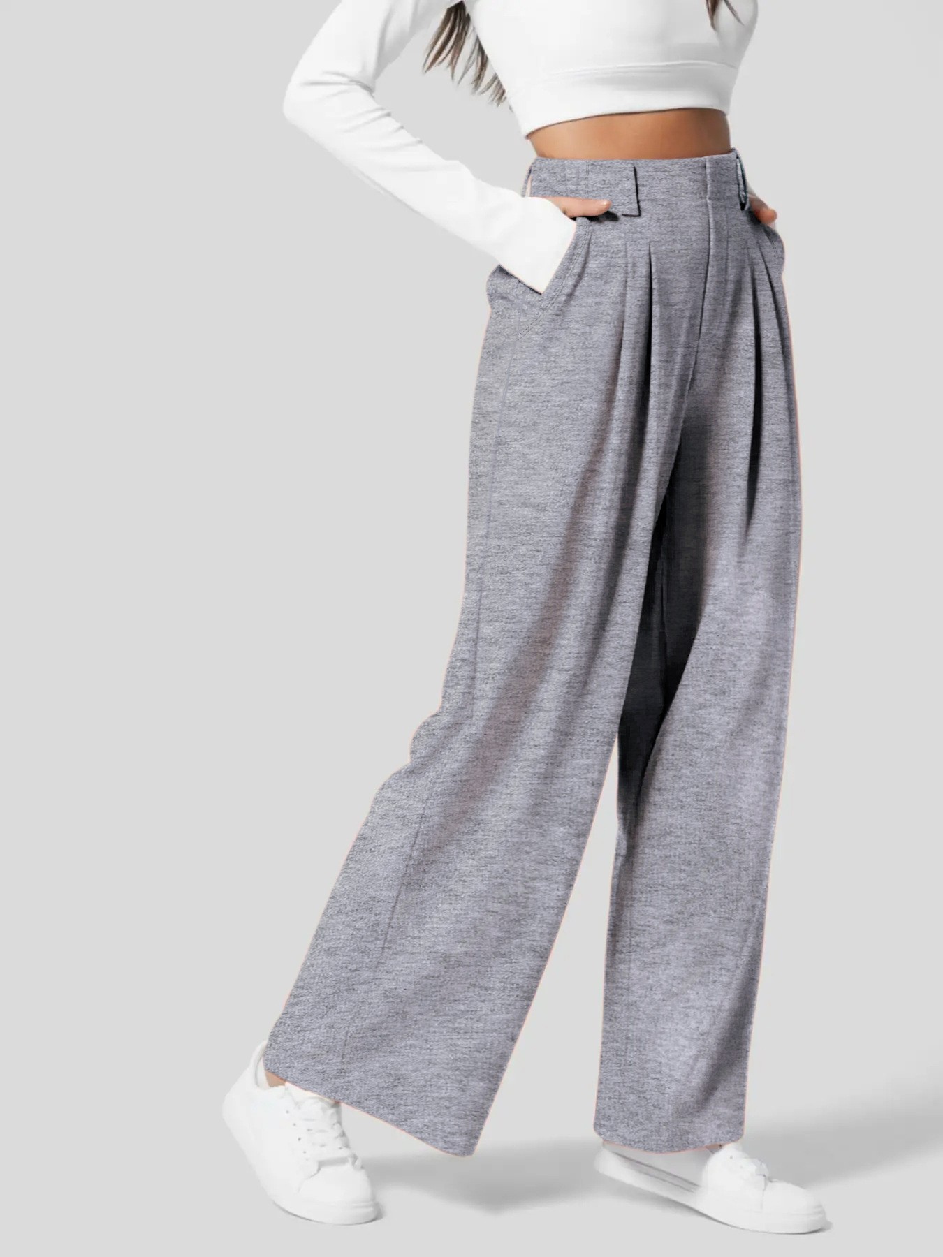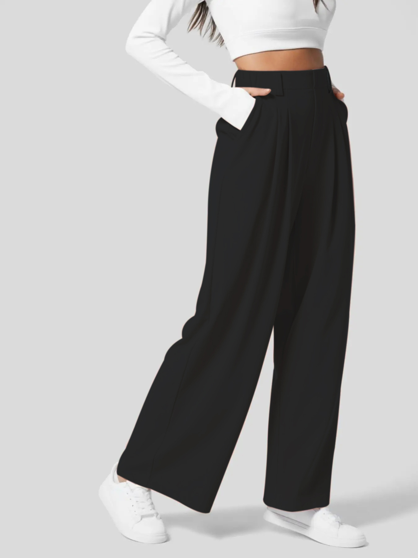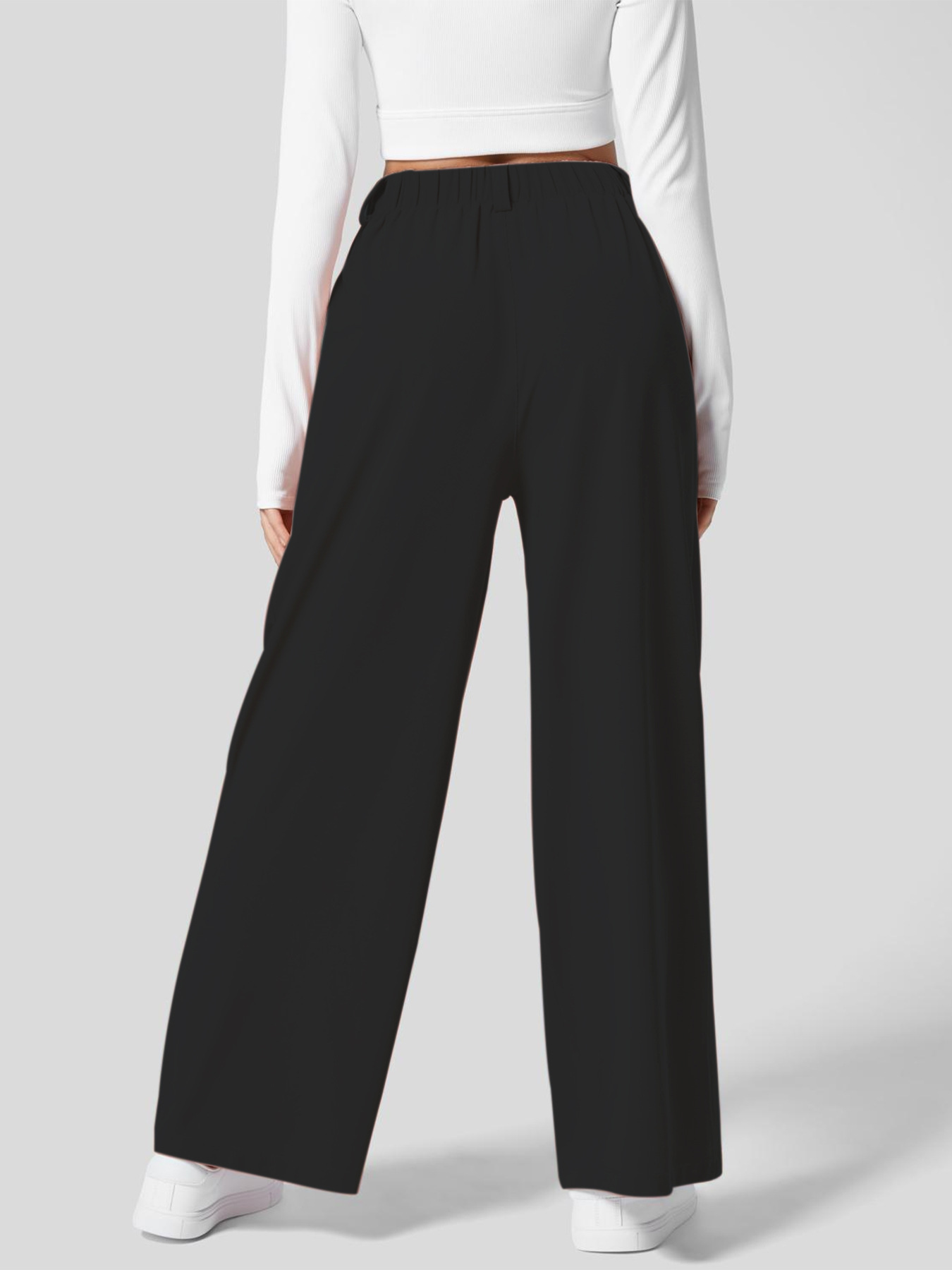 [涤纶材料] 这款休闲裤采用优质涤纶面料制成,质地光滑轻盈,具有微妙的弹性。这种面料具有足够的伸缩性,既能保证舒适的活动性,又能在日常穿着中保持形状,在任何季节都经久耐用,易于打理。 [设计特点] 这款长裤采用高腰设计,富有弹力,能修饰身形;直筒剪裁,兼顾宽松舒适和修身合体。纯色设计散发出一种休闲优雅的风格,将多功能性与低调的精致感融为一体,打造出毫不费力的造型。