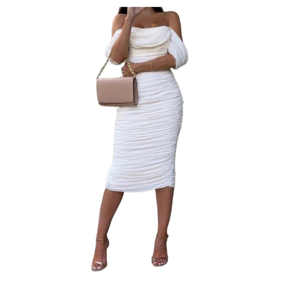 特点:女式网眼连衣裙;女式无袖连衣裙;夏日女士抹胸裙;女性露肩裙;女褶裥连衣裙;女式紧身连衣裙;女子正式及地长裙;女长裙;无靠背的礼服 亮点:这款紧身连衣裙的露肩和巧妙的褶皱设计增强了你自然的姿态,创造了优雅的气场。而战略性放置后开叉不仅确保轻松的运动,但也强调你的迷人魅力 细节:整个吊带裙的设计提高了这款长款无肩带连衣裙的贴合度,适合不同的体型,而胸围区域的防滑带在穿着时提供了额外的安全性和舒适性 场合:这种优雅的长裙适合大多数正式场合;酒会礼服;俱乐部礼服;演唱会的服装;同学会服装;婚礼宾客礼服;约会夜裙;外出服装;夏天的衣服;外出夜礼服
