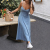 欧美风V领吊带牛仔无袖长裙做旧设计牛仔连衣裙