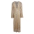 [涤纶面料] 这款度假风格连衣裙采用优质涤纶面料制成,质地轻盈透气,非常适合温暖的天气。面料精美地保留了复杂的蕾丝镂空网眼设计,光滑的表面确保了与皮肤的舒适贴合,同时又保持了沙滩日和旅行时的耐用性。 [设计特点] 这款超长连衣裙采用醒目的 V 领设计,更显优雅,长袖设计巧妙地遮盖了胸部。收腰设计凸显轮廓,而开放式前摆设计则便于活动,并带来一丝诱惑。长及地板的款式营造出空灵、戏剧化的外观,辅以精致的蕾丝镂空网纱细节和大胆的几何图案,增强了其设计吸引力。