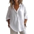 2025春夏欧美 纯色休闲宽松长袖亚麻V领衬衫 亚马逊衬衣女