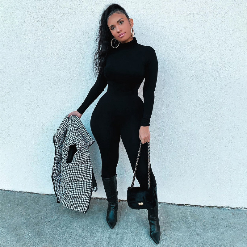 [涤纶和氨纶材料] 这款性感连体服由优质的涤纶和氨纶混纺面料制成,具有出色的拉伸性和塑形性。涤纶确保了耐用性和透气性,让你在穿着时保持干爽;氨纶则提供了柔韧的第二层肌肤,可随身体移动,在舒适与支撑之间取得平衡。 [设计特点] 这款连体衣时尚的高领设计增加了覆盖性和保暖性,搭配长袖长裤,在凉爽的天气里为全身提供保护。弹性紧身设计紧贴曲线,凸显您的轮廓,辅以方便的背部拉链开合,让您穿起来更轻松。纯色的设计散发出低调的性感风格,使其成为活动和休闲场合的百搭单品。