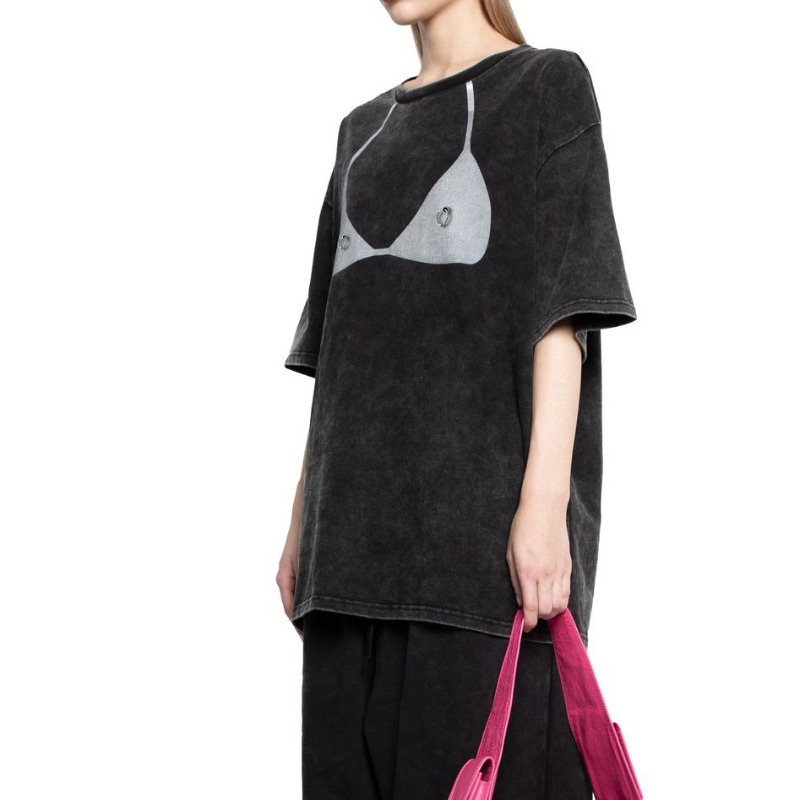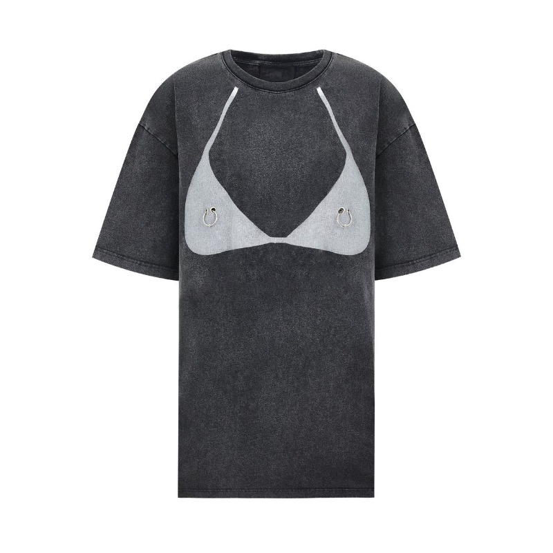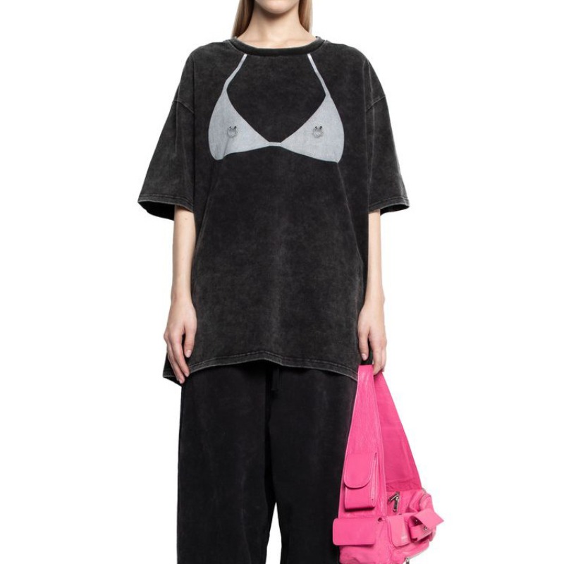 女装比基尼印花短袖T恤女夏季纯棉落肩宽松ins风小众设计上衣