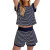 亚马逊2025欧美时尚女士夏季条纹圆领短袖T恤和短裤休闲运动套装