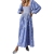 Women's Floral Embroidered Maxi Dress Square Neck Puff Sleeve Smocked Waist Tiered Boho Dress Flowy Casual Ruffle Hem Fall Dress with Pockets, Lightweight Long Dress for Autumn Transition