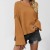 秋冬新款圆领喇叭袖纯色宽松大码圆领女式毛衣女