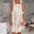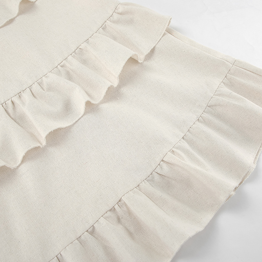 Spring Summer Vacation Style Khaki Cotton Linen Cake Skirt Designed Ruffle Square Neck Dress