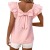 时尚纯色套头上衣欧美圆领短袖荷叶边袖褶皱优雅女士T恤