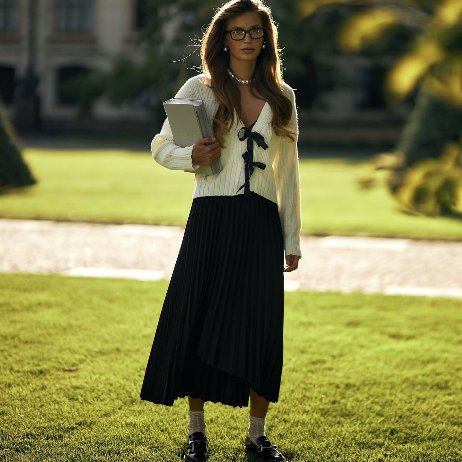 Women's Solid Color V Neck Long Sleeve Cardigan Sweaters Elegant Oversized Open Front Bow Tie Knit Tops Y2K Girls Loose Fit Cropped Outerwear for Daily, Date Nights & Homecoming Wear
