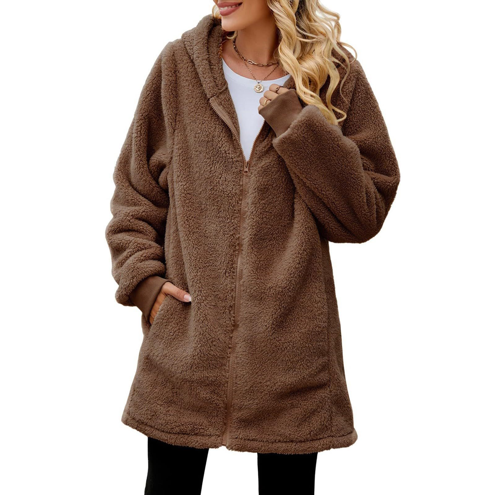 New Winter Loose Plush Women's Long Sleeve Hooded Zip Cardigan Coat