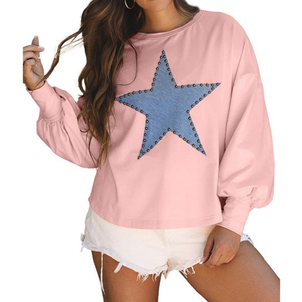 Autumn New Pullover Round Neck Long Sleeve Top Women's Fashion Personality Five Pointed Star Print Hoodie