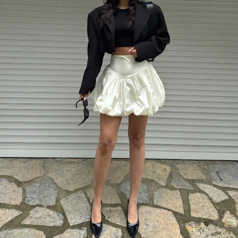 Women's White Mini Skirt Lantern Hem A-Line Skirt High Waist Slim Fit Versatile Casual Skirt Summer Outfit Essential