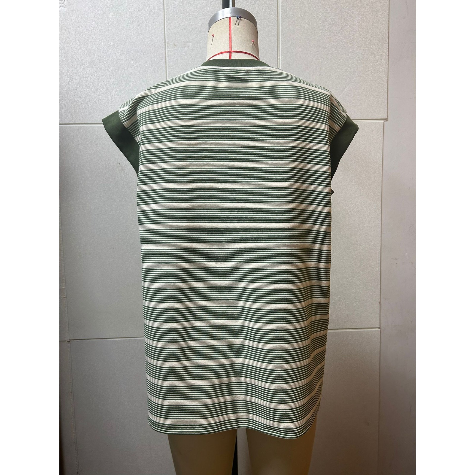 Women's summer round neck striped knitted T-shirt fashion spring loose t-shirt shirt