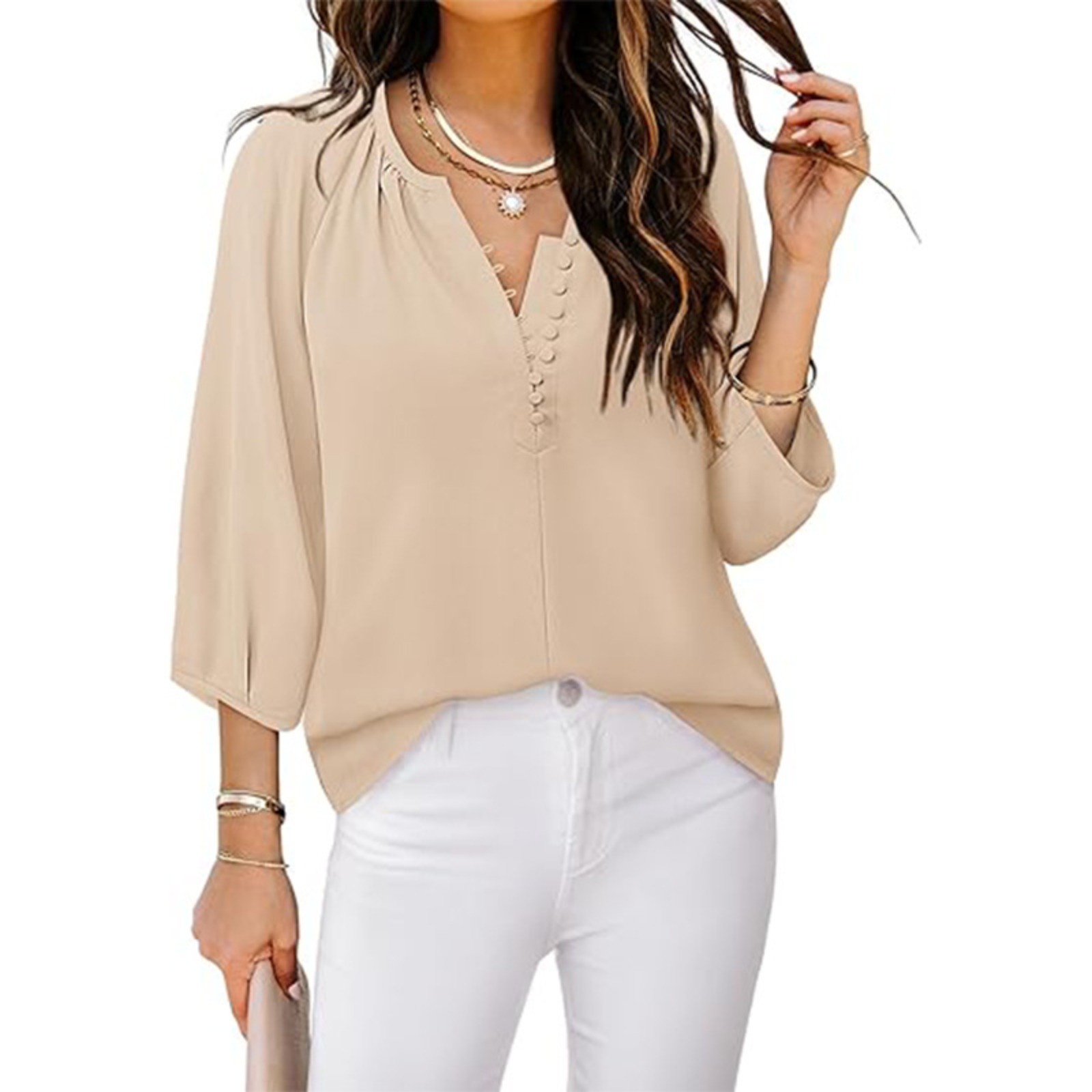 女装爆款V领七分袖波西米亚雪纺系扣衬衫