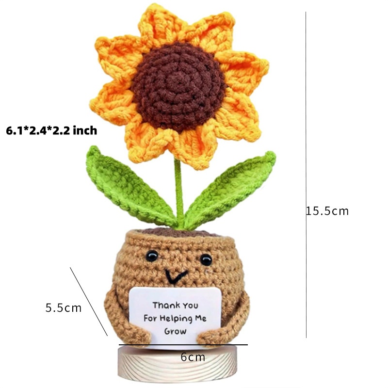 母亲感谢礼物:用完美的母亲节贴心礼物,向你的母亲展示他们是多么不可思议。 这款针织向日葵花盆象征着"谢谢你帮助我成长"的信息。 • 年末教师礼物:如果您想在学年结束时向老师表达感谢,这款手工钩针编织向日葵花盆是您的最佳选择,感谢他们全年辛勤工作。 教师就像园丁一样,指导和培养学生开花和成长。 • 【最佳母亲节礼物】这款钩针编织向日葵上面写着感恩的信息,也可以将母亲的名字写在卡片上。 这是一款贴心的个性化礼物。您可以将向日葵送给数学老师、语言老师、英语老师、音乐老师、舞蹈老师等。 • 用途广泛:我们的人造正针织向日葵是一件很棒的感谢礼物。 无论是教过你的老师还是帮助你成长的长辈,你都可以给他们这个礼物。它们是学年结束,教师节,圣诞节,退休,毕业,教师生日的理想选择。 • 优质针织向日葵花盆:这款向日葵花盆采用优质纱线制成,柔软蓬松,不易褪色或脱落,可持续很长时间。 每个毛绒植物均为手工制作,大小各异,独一无二!