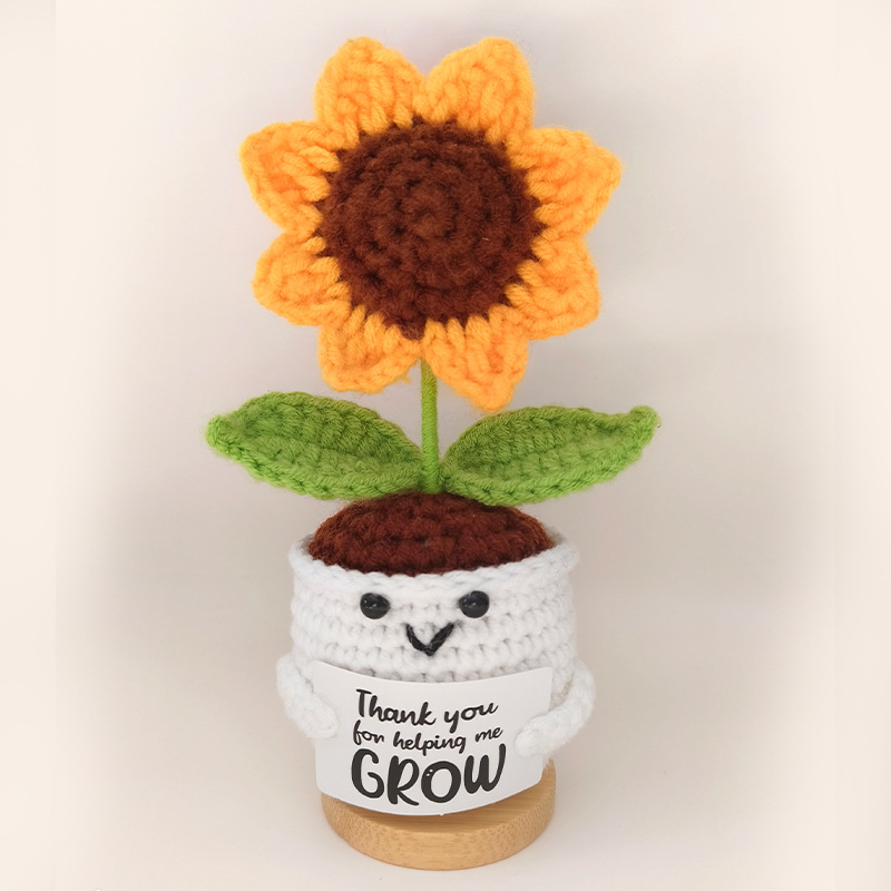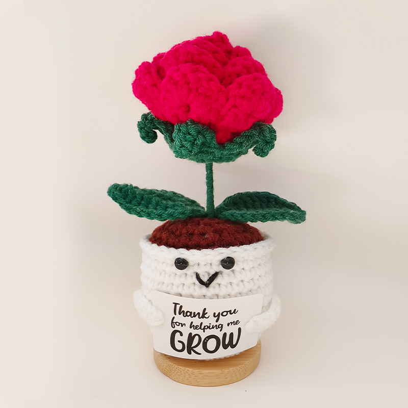 钩织向日葵盆栽摆件成品手工针织玫瑰花装饰品玩偶跨境热卖便便
