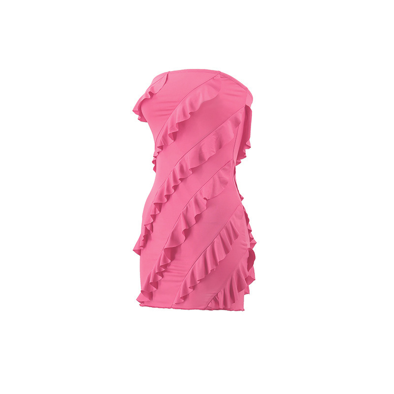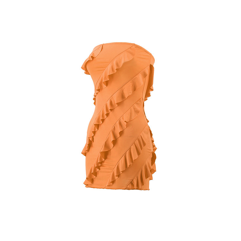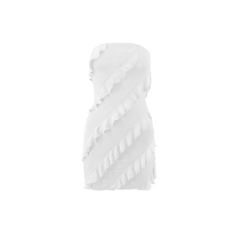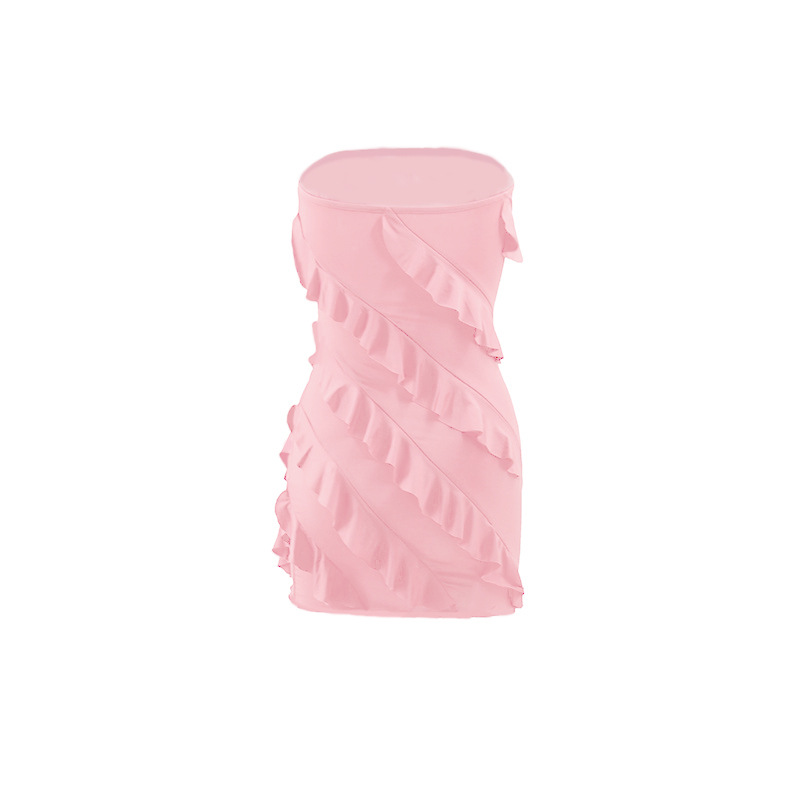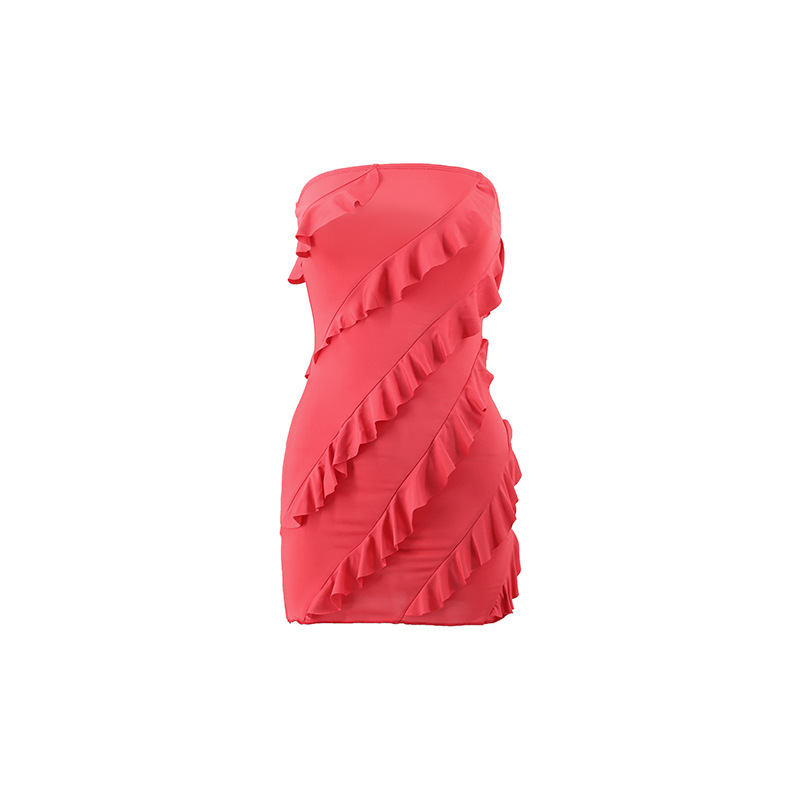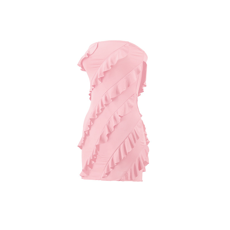 跨境外贸欧美2025夏季性感l辣妹女装抹胸立体花边修身包臀连衣裙