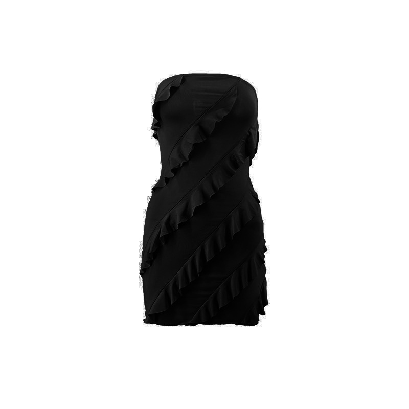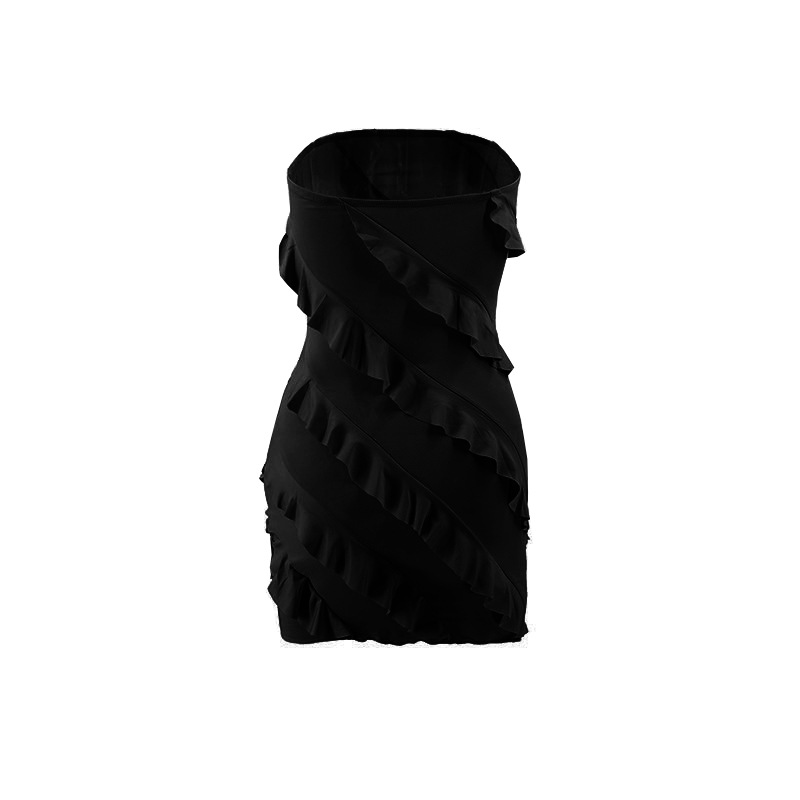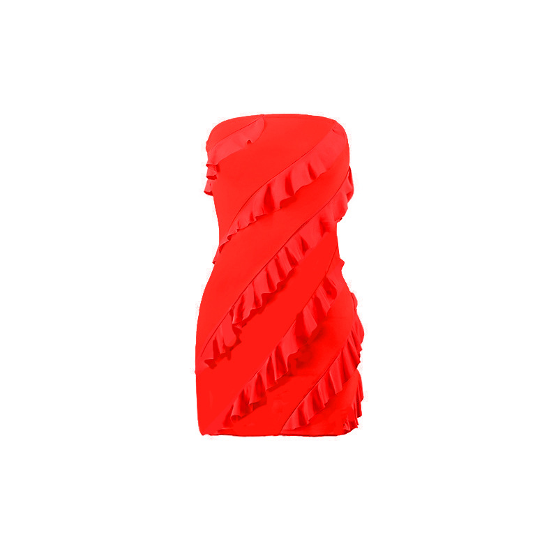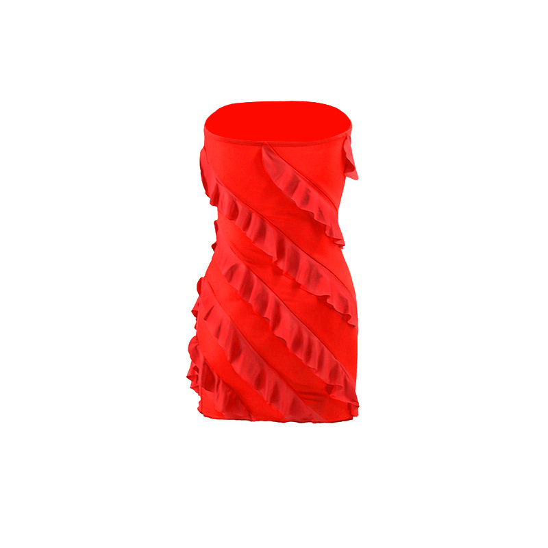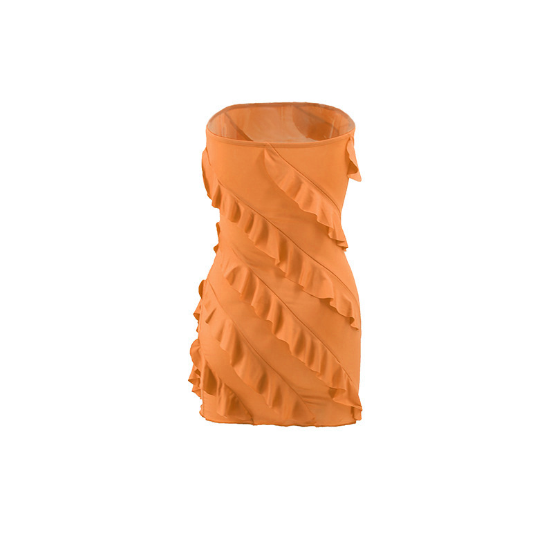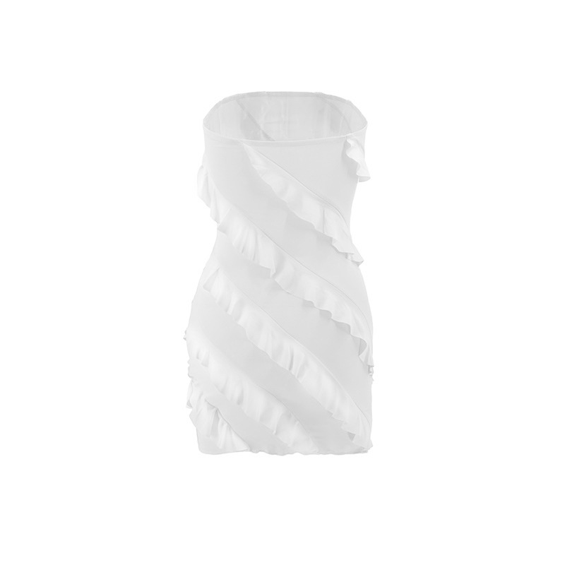 跨境外贸欧美2025夏季性感l辣妹女装抹胸立体花边修身包臀连衣裙
