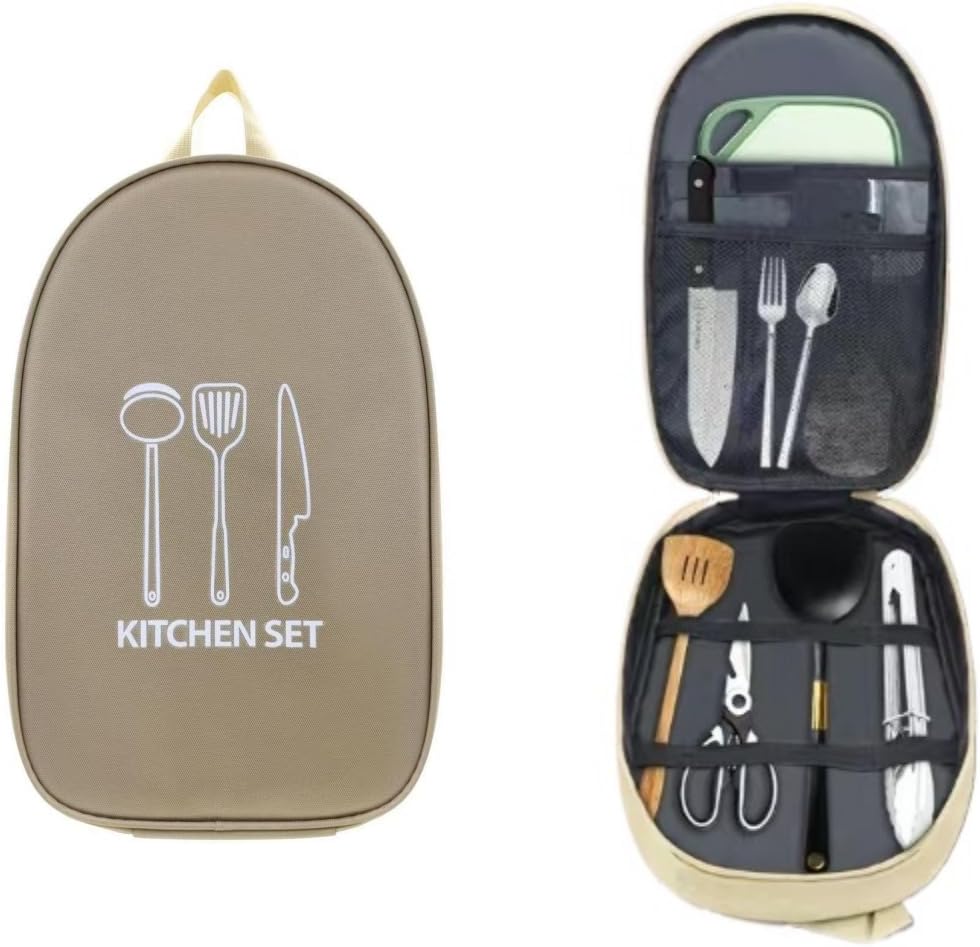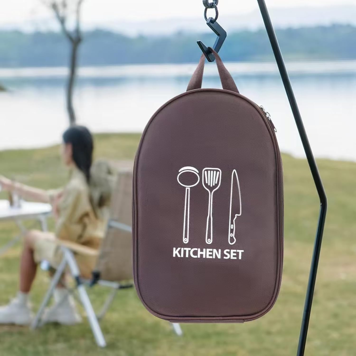 Camping cookware storage bag, camping cooking utensils set bag, camping tools portable storage bag, suitable for knives, forks, spoons, chopping boards, chef knives and kitchen utensils storage.