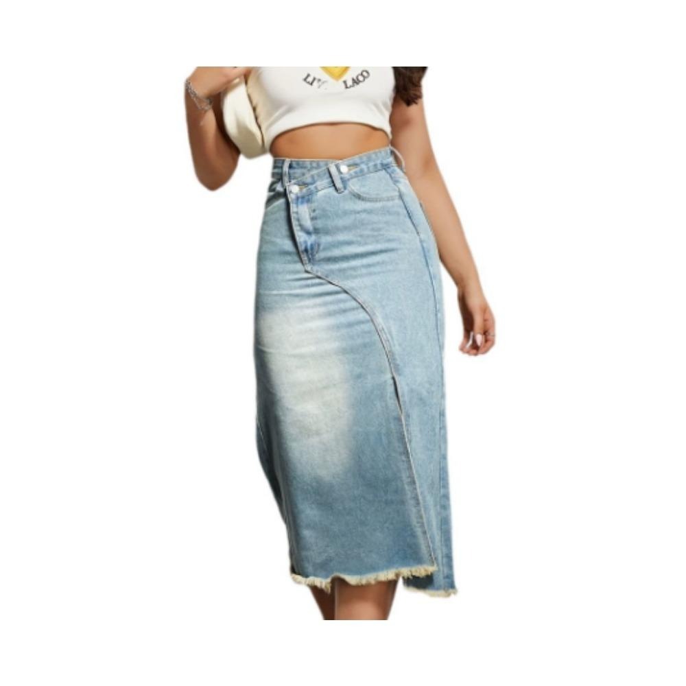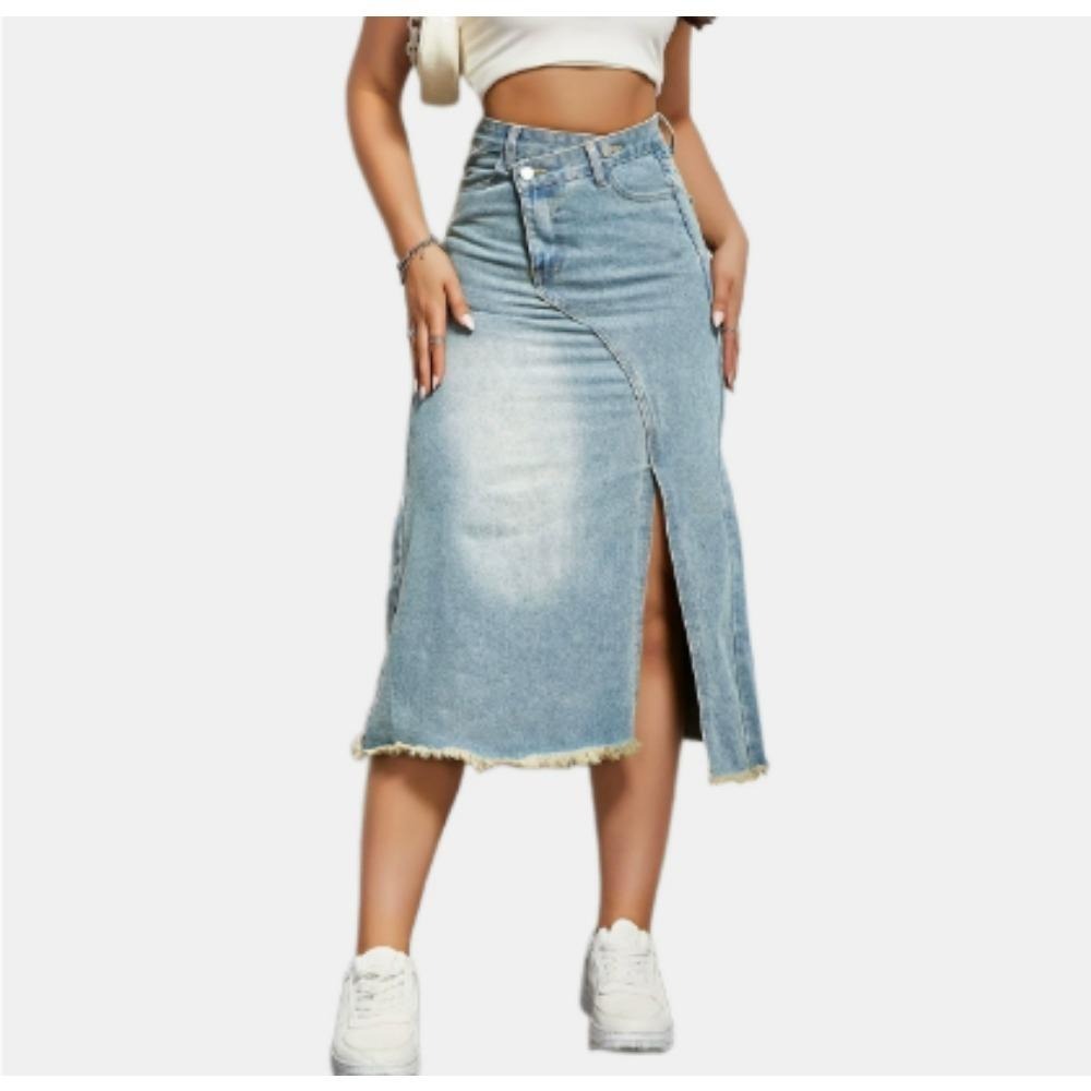 特点:及膝高腰弹力牛仔裙,前/后口袋,时尚的开叉细节,原始磨损下摆,纽扣/拉链关闭,全天舒适 设计:这条中长牛仔裙的特点是高腰设计,粗糙的磨边,拥抱你的曲线,突出你的自然轮廓,适合所有体型 场合:这种多用途的高层牛仔裙可以在不同的季节和场合无缝转换——从工作到周末——同时美丽地突出你的自然曲线 容易搭配:在夏天,这条高腰牛仔裙可以轻松搭配休闲t恤和正装衬衫,或者在凉爽的月份里搭配毛衣和夹克——非常适合工作、约会、旅行等等