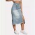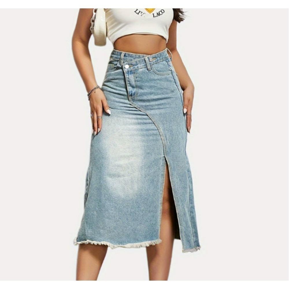 Women’s High Waist Midi Jean Skirt Casual Split Frayed Raw Hem Stretchy Knee Length Denim Skirt