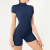 妇女短袖锻炼连衣裤拉链连衣裤底部短裤紧身衣Bodycon性感一件