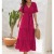 女士波西米亚瑞士点及地长裙包裹V领扑动短袖实心领带腰带一行分层飘逸长裙母亲节