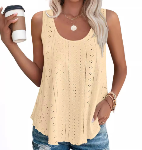 Product Description: Combine Comfort and Style, Effortlessly Embrace Summer Fashion! This lightweight sleeveless T-shirt is made from 100% polyester, featuring a relaxed fit and classic crew neck for a casual yet stylish look. The loose silhouette and breathable design keep you cool while maintaining effortless chic, making it a must-have for your summer wardrobe! Product Features: Relaxed Fit: Comfortable loose cut that flatters all body types Classic Round Neck: Timeless crew neckline for versatile styling Sleeveless Design: Cool and airy for maximum comfort Ideal For: Everyday casual wear Summer outings Layering under cardigans Pairing with shorts or skirts Make Summer Dressing Easy and Comfortable! Get this essential sleeveless top today and enjoy the perfect blend of comfort and effortless style! Style Tip: Tuck into high-waisted jeans and add a belt for a put-together casual look!
