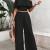 女性夏季2件套服装褶皱设置肩无袖管露脐上衣宽腿裤设置口袋连体裤