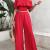 女性夏季2件套服装褶皱设置肩无袖管露脐上衣宽腿裤设置口袋连体裤