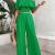 女性夏季2件套服装褶皱设置肩无袖管露脐上衣宽腿裤设置口袋连体裤