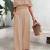 女性夏季2件套服装褶皱设置肩无袖管露脐上衣宽腿裤设置口袋连体裤