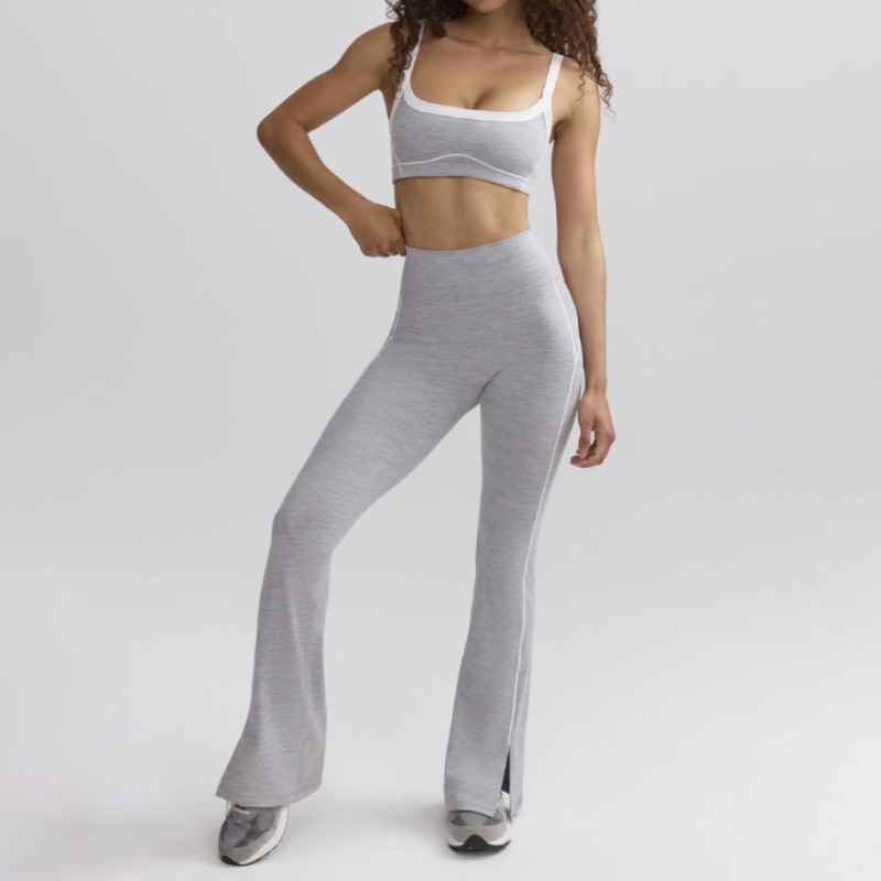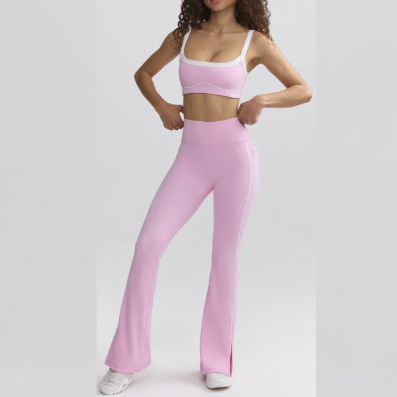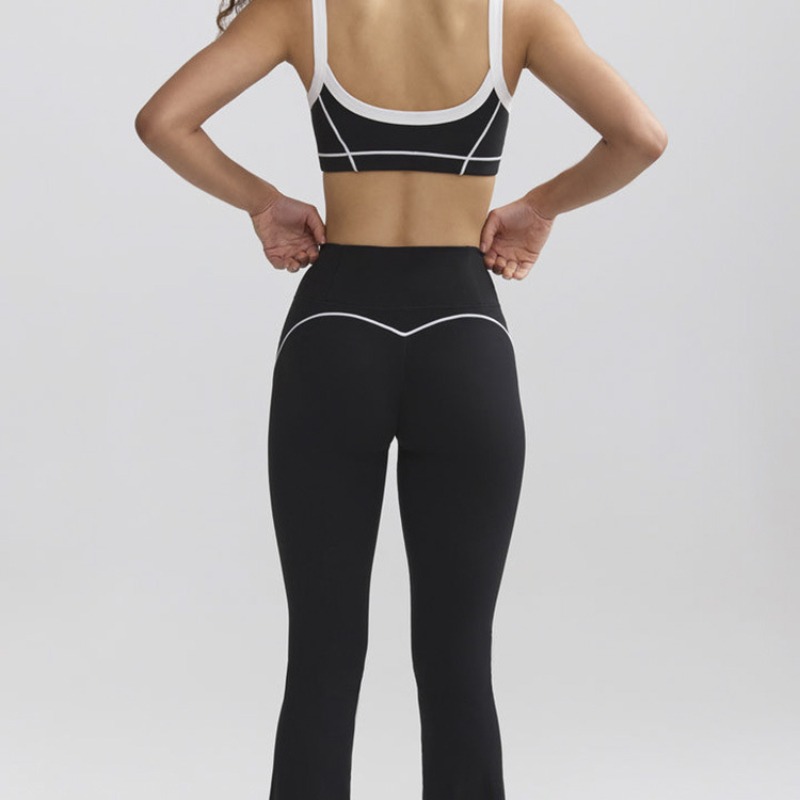 裸感高弹力运动撞色文胸吊带提臀健身喇叭长裤瑜伽运动套装