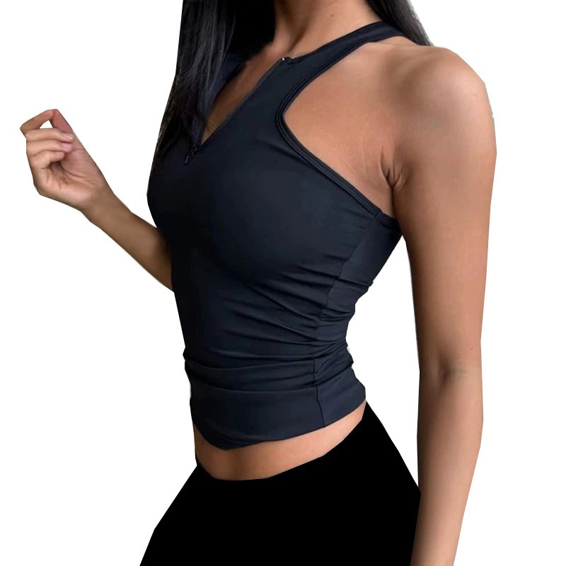 Women's Workout Tank Top Zip-Front Sports Bra High-Impact Training Shirt Moisture-Wicking Gym Wear Yoga Running Top