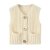 女式钩针粗针织上衣 无袖纽扣羽绒短上衣 潮流开衫带口袋女式毛衣背心