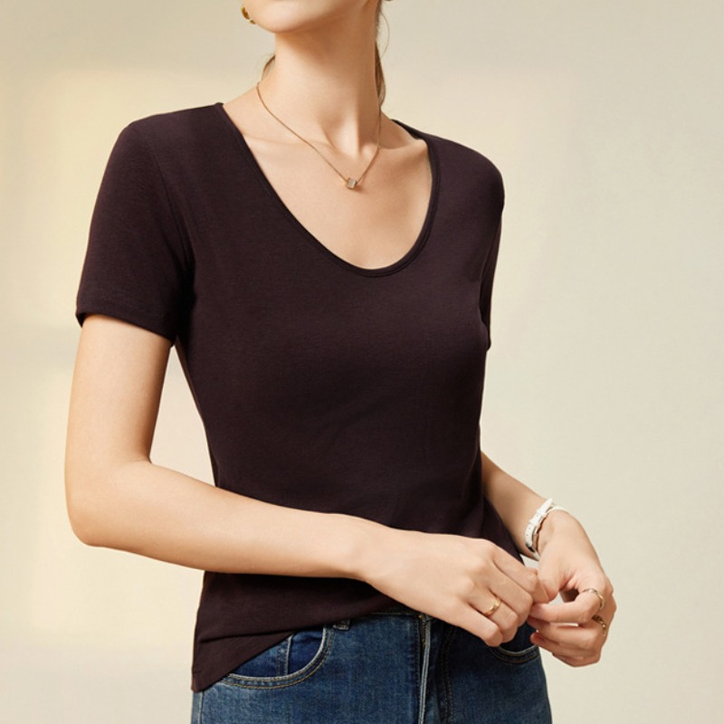 About this item 【PRODUCT】Experience everyday luxury with our Women's Stretch V-Neck Basic Tee, crafted from premium cotton-blend fabric with exceptional 4-way stretch for a flawless, body-hugging fit. This essential wardrobe staple features a flattering V-neckline that elongates the neck and frames the décolletage beautifully, while the slim-fit silhouette smooths and sculpts for effortless elegance 【PREMIUM FABRIC】 Moves with your body like a second skin Bounces back to shape after each wear Wicks moisture to keep you dry Softens with every wash Resists pilling and stretching out 【FLATTERING DESIGN】 Deep V-neck creates elegant neckline Contoured side seams for sculpted fit Tagless label prevents irritation Reinforced shoulders maintain shape Stretch rib knit collar keeps its form 【VERSATILE WEAR】Perfect for: Layering under blazers or cardigans Tucking into high-waisted bottoms Wearing solo with jeans or skirts Dressing up with statement necklaces Casual Fridays at the office 【EASY CARE】Machine washable fabric that: Resists wrinkles naturally Maintains rich color after washes Dries quickly Requires minimal ironing