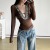 欧美跨境辣妹性感风亮片长袖T恤v领设计感打底衫修身内搭拼接上衣