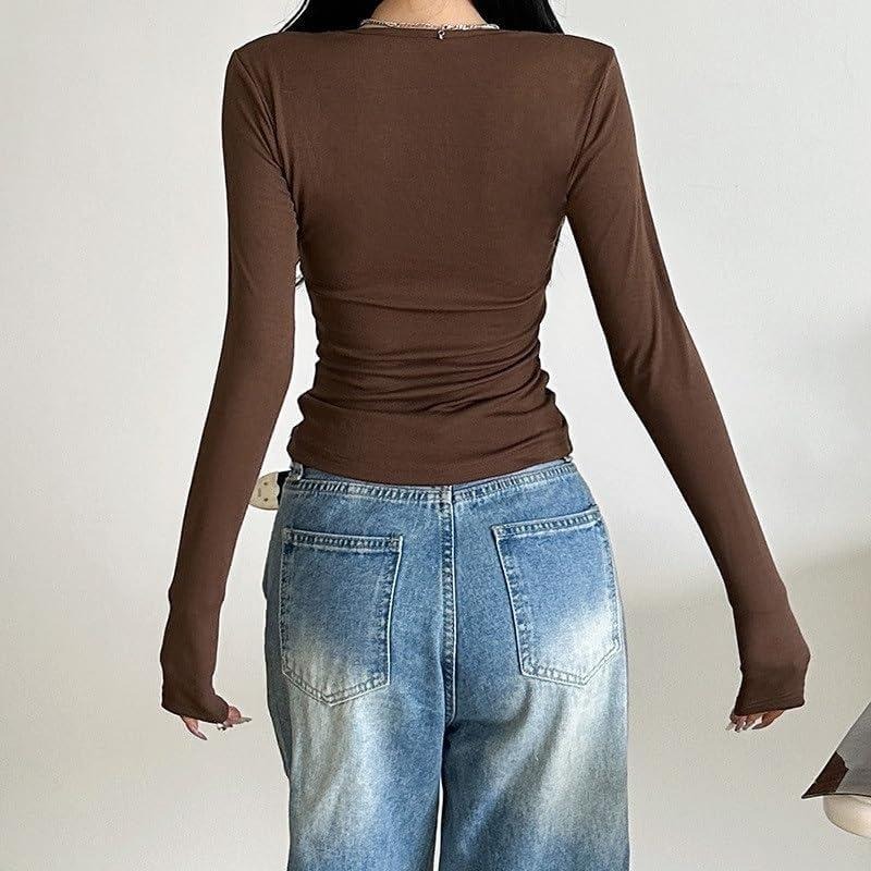 材质:领型宽松长袖衬衫采用涤纶和氨纶制成,舒适柔软 特点:袖口和领口的设计为这件衣服增添了时尚和精致的元素,使它成为各种造型的选择 设计:经典的领口和长袖设计,让它看起来更休闲、轻松,是分层和单独穿着的绝佳选择 搭配:这款基本款t恤是秋季必备的时尚单品。它与西装、牛仔裤、长裙或休闲裤都是绝配 场合:时尚的设计,适合室内外佩戴。你可以穿这件经典时尚的女式长袖衬衫健身、瑜伽、日常穿搭、街拍、狂欢派对、俱乐部、约会、海滩、旅游、度假、购物,四季皆宜 可调式无肩带领口采用实心缠绕式结构,在聚会或海滩度假时,既能突出锁骨,又能保持遮盖效果