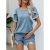 Womens 2025 Summer Crewneck Crochet Lace Sleeve Tunic Blouse Y2K Retro Coquette Loose Fit Breathable Top Casual Vacation Ready Street Style Everyday Essential