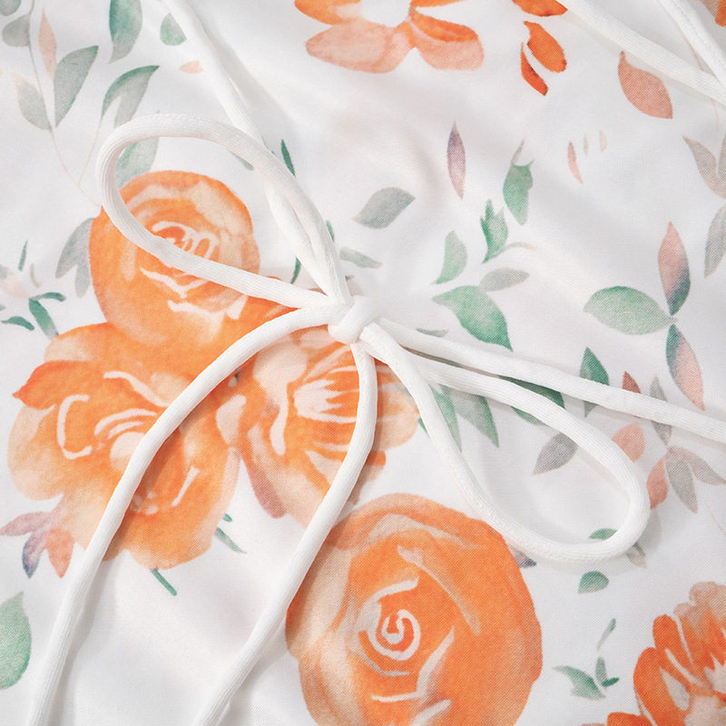 收腰长裙吊带印花修身绑带连衣裙