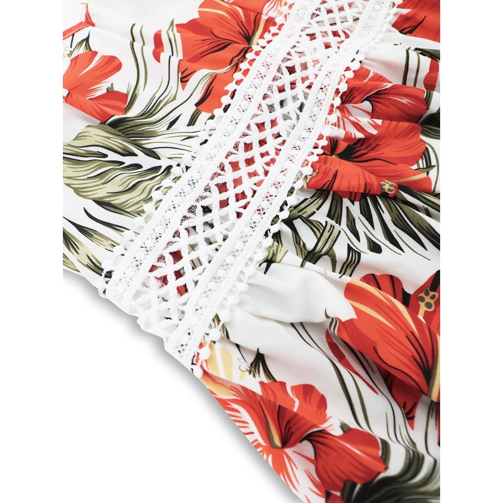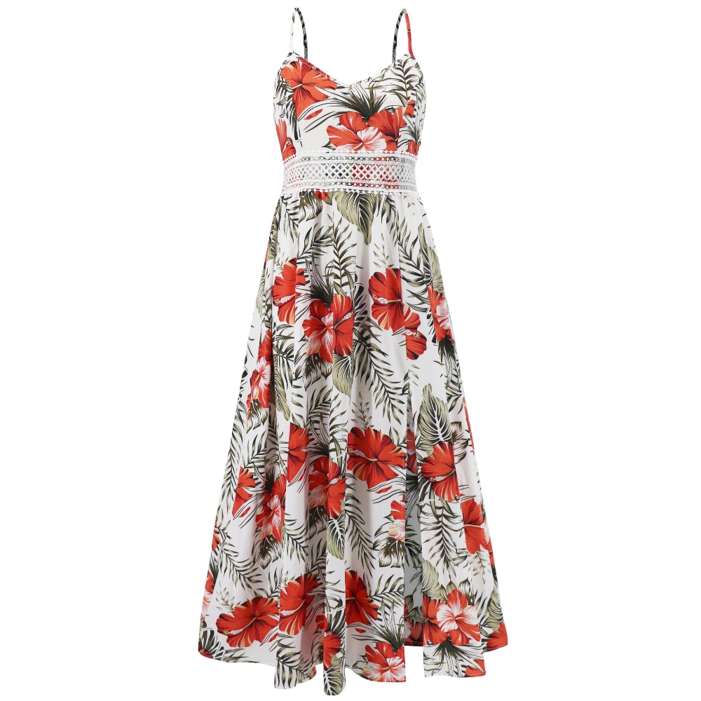 [涤纶面料] 此款连衣裙采用优质涤纶面料制成,轻便、舒适、耐用。在炎热的夏日里也能保持透气性,洗涤后仍能保持鲜艳的印花和形状。 [设计特点] 精致的吊带和甜心领口设计美化了你的肩膀和锁骨,营造出女性的妩媚和诱惑。腰部的镂空设计增添了一丝性感,凸显了你的曲线,是大胆的时尚宣言。鲜艳的植物花卉印花抓住了波西米亚风格的精髓,为这款连衣裙注入了活泼、自由的气息。开放、飘逸的下摆设计便于活动,并增添了优雅、微风拂面的效果,非常适合无忧无虑的夏日造型。