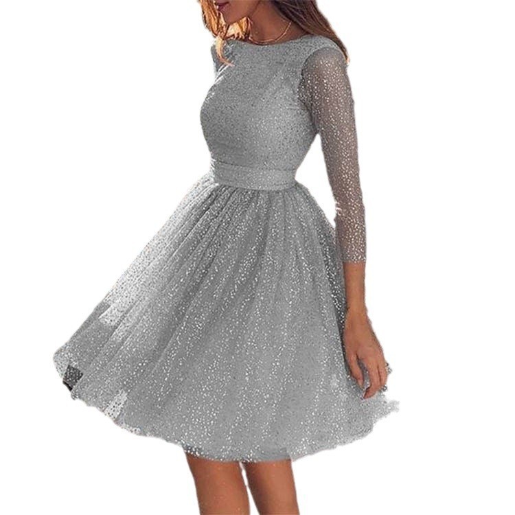 女性派对礼服2025长袖娃娃礼服圆领纯色舞会礼服优雅的迷你裙