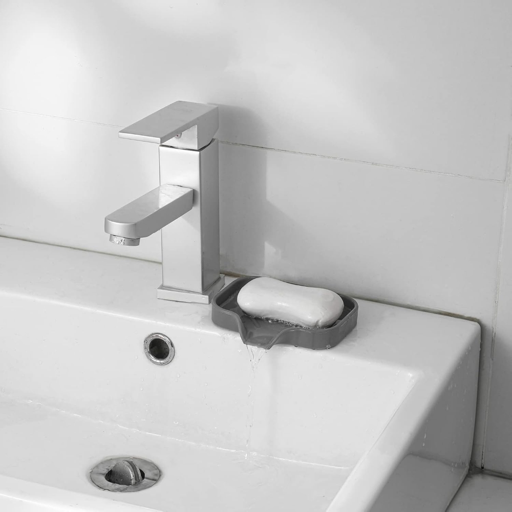 带排水口的硅胶浴室皂盘-浴室和厨房水槽收纳盒,海绵架,碗碟皂盘,完美适用于水槽或台面的分配器、擦洗器、瓶子、杯子-灰色
