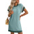 2025亚马逊新款女装跨境欧美夏季休闲撞色扭扭条短袖口袋连衣裙
