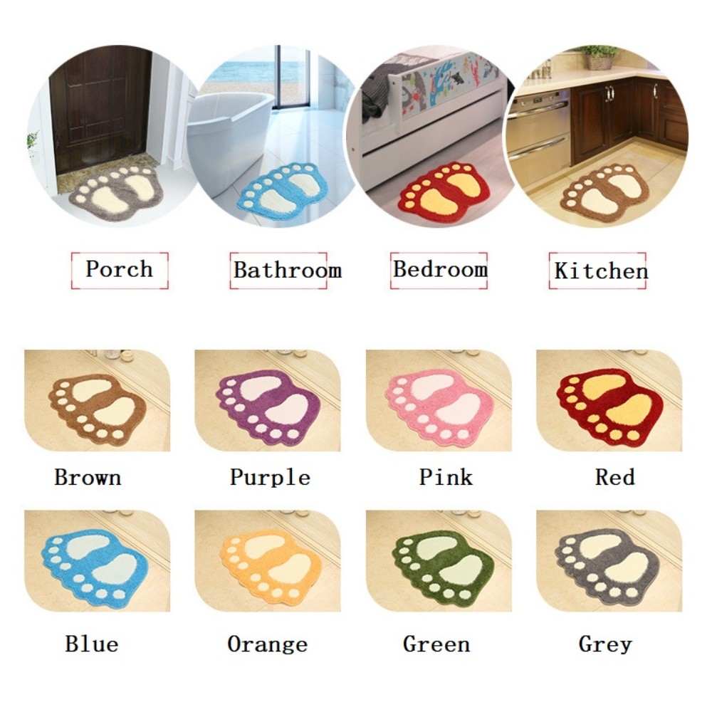 《Material》Polyester; Size: 16"x 24"/19"x26" /23"×35" Super Water Absorbent.Remove dirt and moisture from the soles of shoe,keep you room clean Durable latex Rubber backing,Anti slip back side. prevent you from skidding on wet floor and keeps the bath rug in place, even when wet. Anti-Skid Latex Backing Cute Big Feet Design. Great decor for you toilet or bathroom at festival holiday especially kid's room decoration More comfortable and soft,Machine and hand washable,dry quickly. Note: Please DO NOT use the dryer or put it in hot water