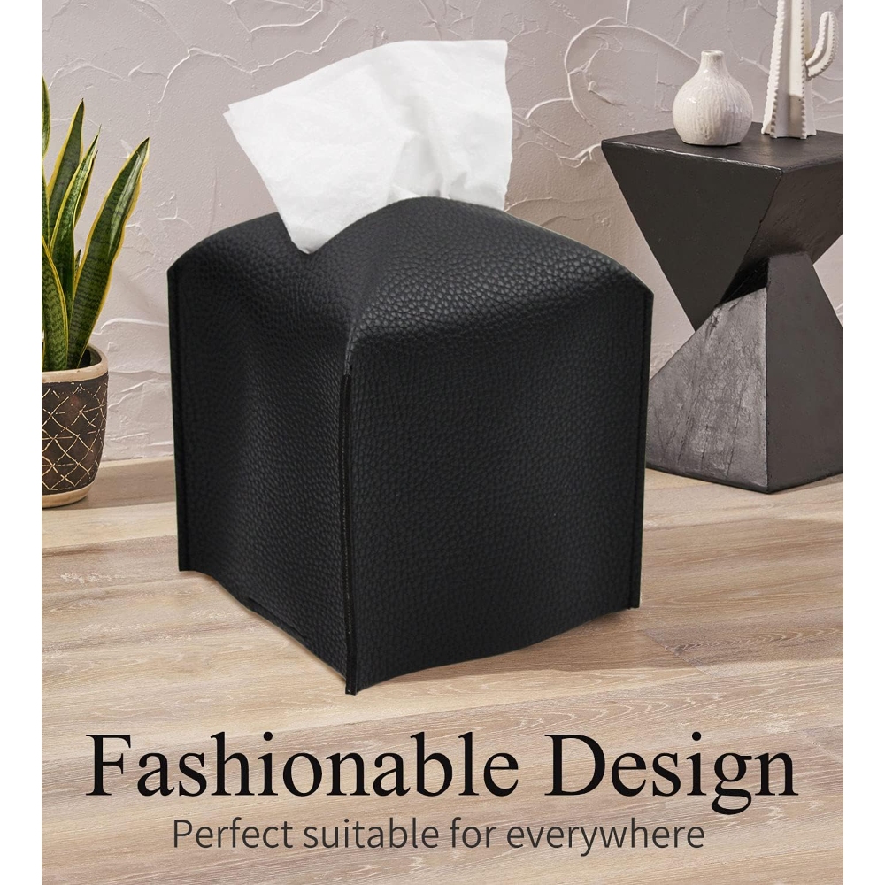CONCISE & REFINDED - Tissue box cover cube is made of durable premium PU leather. The stylish decoration tissue case box holder organizer has concise and refined, excellent workmanship. The clean, concise and modern design is perfect for home decor and office use, this is the missing piece in your room design that will complement any interior decor. It is the perfect choice for concealing your tissue boxes. CONVENIENT TO STORE - Dress up standard, square tissue boxes with this stylish cover; easily conceals cardboard tissue boxes. The tissue box case cube can be foldable reusable for easy storage, also can be effortlessly restored to its original shape. Easy to cleaning, just wipe with wet cloth. EASY TO REFILL - Just open the Velcro belt on the bottom for easy replacement of empty tissue boxes. IDEAL SIZE: Measuring 5.0 X 5.0 X 5.0 inches in size, the leather tissue box cover features a Square shape, compatible with all popular square tissue boxes, and can be conveniently placed in any room in your house or office. WHAT YOU GET: High quality PU leather tissue box cover, It's a good gift for home, office, and car. Perfect for most tables, night stands, desktops, countertops in kitchen, vanities and desks, living room in your daily life. It is a great gift idea for housewarming, house decoration, etc.