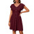 欧美跨境2025亚马逊夏季新品女装V领纽扣收腰弹力短袖连衣裙女