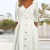 女装纯色长袖V领交叉纽扣休闲连衣裙长裙