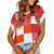 [Polyester & Cotton Blend] Made from a premium polyester and cotton blend, this top is soft, breathable and durable. The fabric retains its shape and vibrant colours whilst maintaining comfort [Design Features] The classic crew neck, short-sleeve knit design creates a timeless, comfortable look that's perfect for layering or wearing alone in transitional weather. The colour-blocked large square pattern adds a stylish, eye-catching element, blending modern style with vintage vibes for a distinctive aesthetic. The loose, slim fit drapes gently over the body and is suitable for all body types. The short top is cut to accentuate the waist, making it ideal for pairing with high-waisted bottoms for a balanced, stylish look